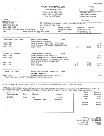On January 17 2022, I ordered an inspection (Inspection #461365) on a 2011 Cadillac Escalade from Lemon Squad. I asked for this inspection because I live 900 miles from the vehicle and needed to confirm it's condition before flying in to buy it. The inspection was performed on January 21 and I received the inspection later that day.