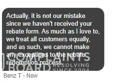Desired outcome: Send me the rebate that was promised.