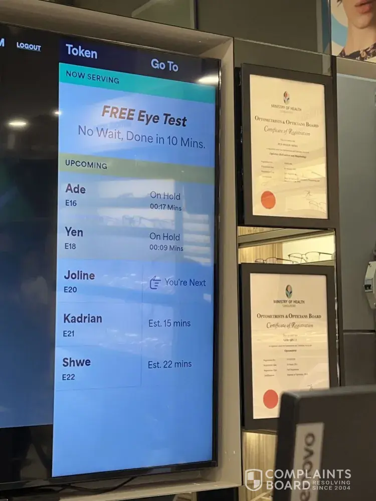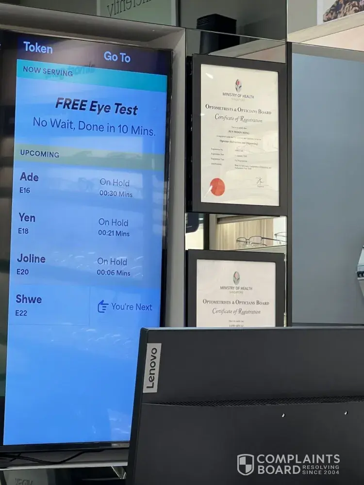 I visited the Nex outlet at 19.30 20 June 2025 to inquire about making an appointment for eyes test. A staff member, Vee, seemed too busy to assist me, despite my offer to wait. After waiting, she prioritized other customers, ignored me, and even walked away when I approached her. When she finally attended to me, she was dismissive and unhelpful. After making an appointment, I received a missed call and returned to the shop, only to be ignored again by Vee. Fortunately, another staff member (Wilfred Koh) stepped in and provided excellent service, even mentioning to Vee, she had intentionally ignored me. He even said sorry to me. I'm filing an official complaint about Vee's terrible customer service, one of the worst. You can retrieve the cctv to check the fact.