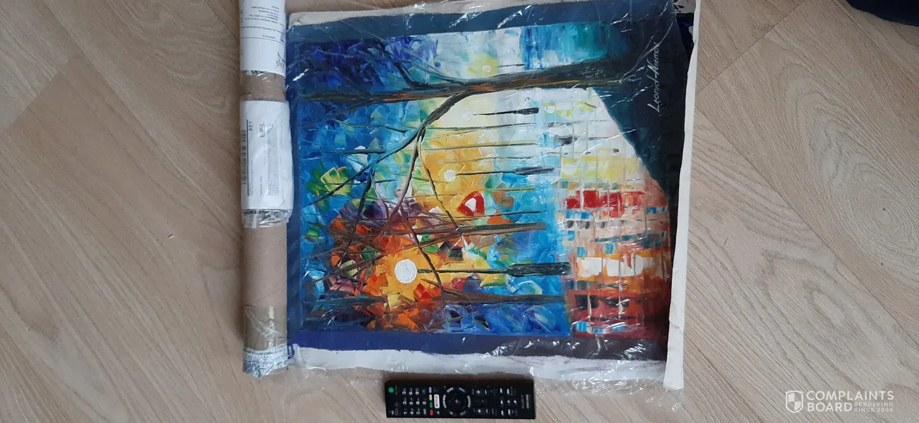 I ordered in 8 September an painting original. I can't choose the painting but the size I choose was 30/40 inch and the subject was landscape. After few emails with "Leonid Afremov" site, finally they send the painting and yesterday I received. Big disappointing! The size is small, half size than what I order and it's brand new, not even dry, it's cover with an plastic foil because it's sticky. For sure can't be painted by Leonid himself before he's death from Augustus... And the quality of painting is very low, is like a children play on the canvas... totally waste of money! Very disappointed!