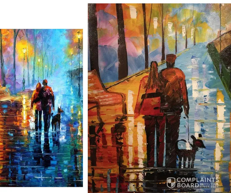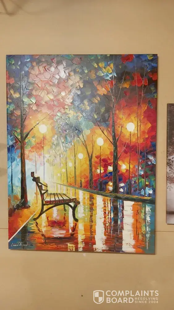 We recently found that the paintings sold us as a recreation by Leonid Afremov, was not done by the artist. The family should have multiple canvas signed by Leonid on the back of the blank canvas, and the studio stuff make fast, low quality recreation, when the order received. Smart scam - no overstock plus orders prepaid and money received. Would you...
