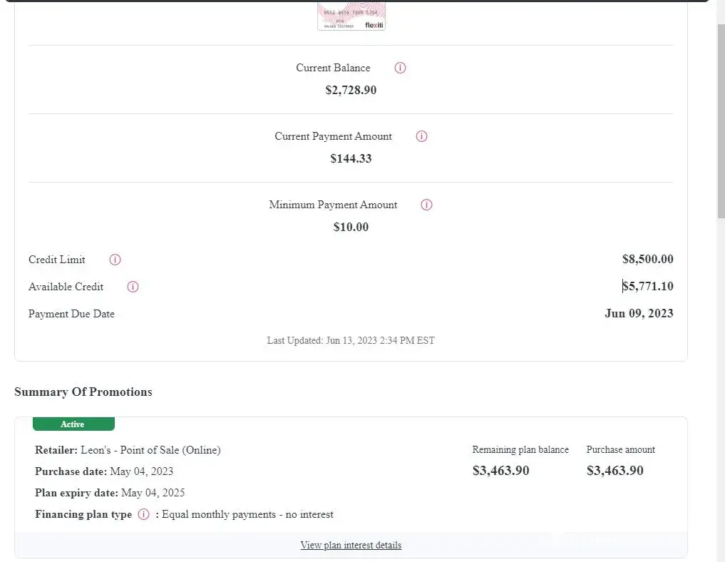 Jun 7, 2023, 7:20 PM Customer Care: wrote: Good day, Our contract is with the Leon's Store, credit can only be offer in-store.