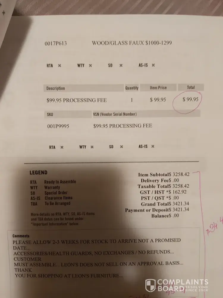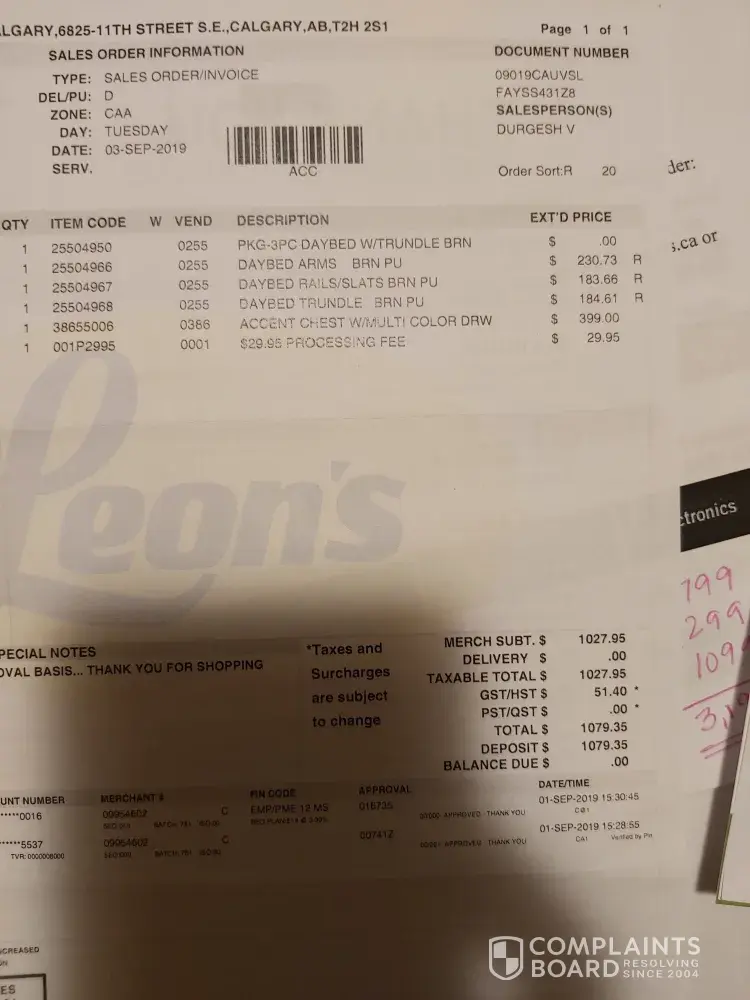 I brought couple of furniture for $3, 421 using the Leons Desjardins financing option as per sales person advised on July 07, 2017 order # 07079CAQSCP. It was a good choice for me to go for 36 months plan according to my family monthly expenses. Few days later I refund some of the items before it was scheduled to delivered. After a month later I again...