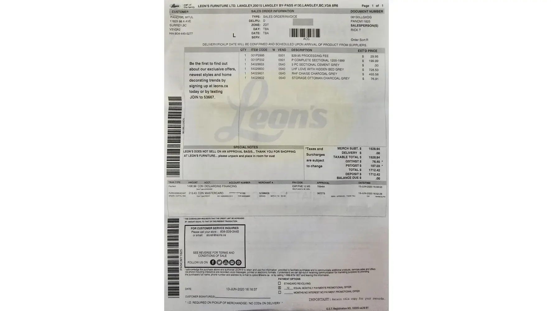 I bought sofa from leon in October 2021. in June i raise a complaint regarding springs which were making alot of noise. after 3 services in 6 months there was another issues of foam came up that foam of the sofa is hitting down. i ask the i took extra manufacturing warranty which i paid 400 dollars extra on 1600dollars sofa([censored]) i complaint again they said it is not covered under it so you have to pay 30 dollars each for each form and it is 90 and tax which i was again okay i don’t have any other option rather than replace. i went to store to pay 90 and tax but at that time representative mentioned - sorry it is not 39 it was 40 dollars each. i said it by mistake and got rude with me. my only mistake I BOUGHT IT FROM LEON- wastage if 2200 dollars.