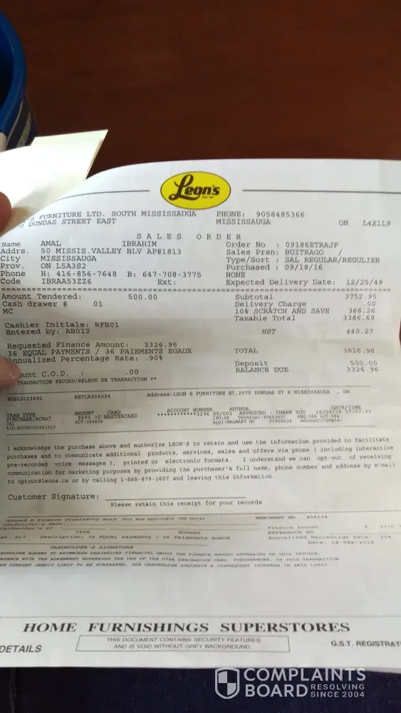 I purchased a bed set and 2 sofas and 1 love seat from Leons on Sept 18th 2016. I requested the delivery on October 12th . The sales agent advised that he arranged for the delivery of the bedroom set on October 12th . The sofas were out of stock and it may take 6 to 8 weeks.I called in on October 10th to confirm . The customer service representative advised that the delivery was not arranged and he wanted to postpone it till October 18th. After negotiations they accepted the delivery on Oct 12th as promised. This bedroom set was my gift to my son for his birthday . When we opened the box the dresser was water damaged so i called for an exchange . the exchange was scheduled 1 week on October 22nd . The night stand was completely damaged so I had to call one more time for exchange . I wanted to return the whole thing as everything was scatched and damaged . They declined the refund or to exchange for something else. When they deliverd the exchanged dresser and night stand they wer both scatched . The headboard was scatched too. they offered an exchange on Nov 12th . I declined as My son's birthday was Oct 23rd and his room is mess. I offered a discount so they offered me 25 at first and after speaking with the manager he offered 50 dollars discount which I find insulting as this issue has been going fot a month . I lost 3 or 4 hours of my time speaking to the agents explaining the situation several times and they gave me a damaged product. On top of that on the delivery date of the sofas the delivery agents were supposed to pick up the older sofas but they declined to do it saying that we should put them in a bag. The sales agent should have provided the bags but he did not even mention them. I called him he said he will speak to his manager and call back and he did not. I am still waiting for a call since morning and now it is 9:00 PM . It looks like he is so busy making sales and promising people with things that will not be done.