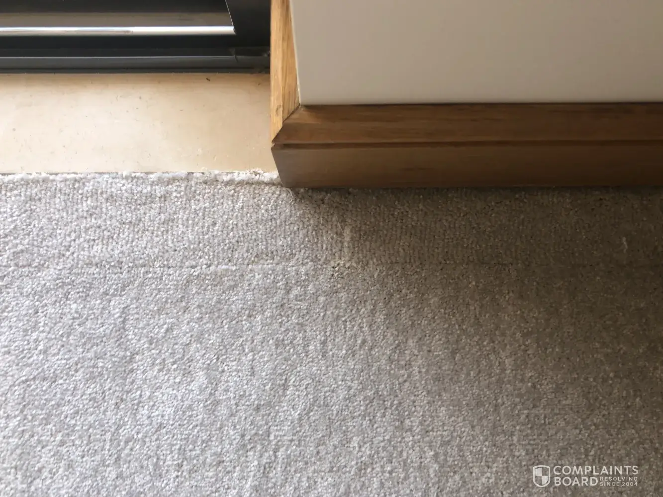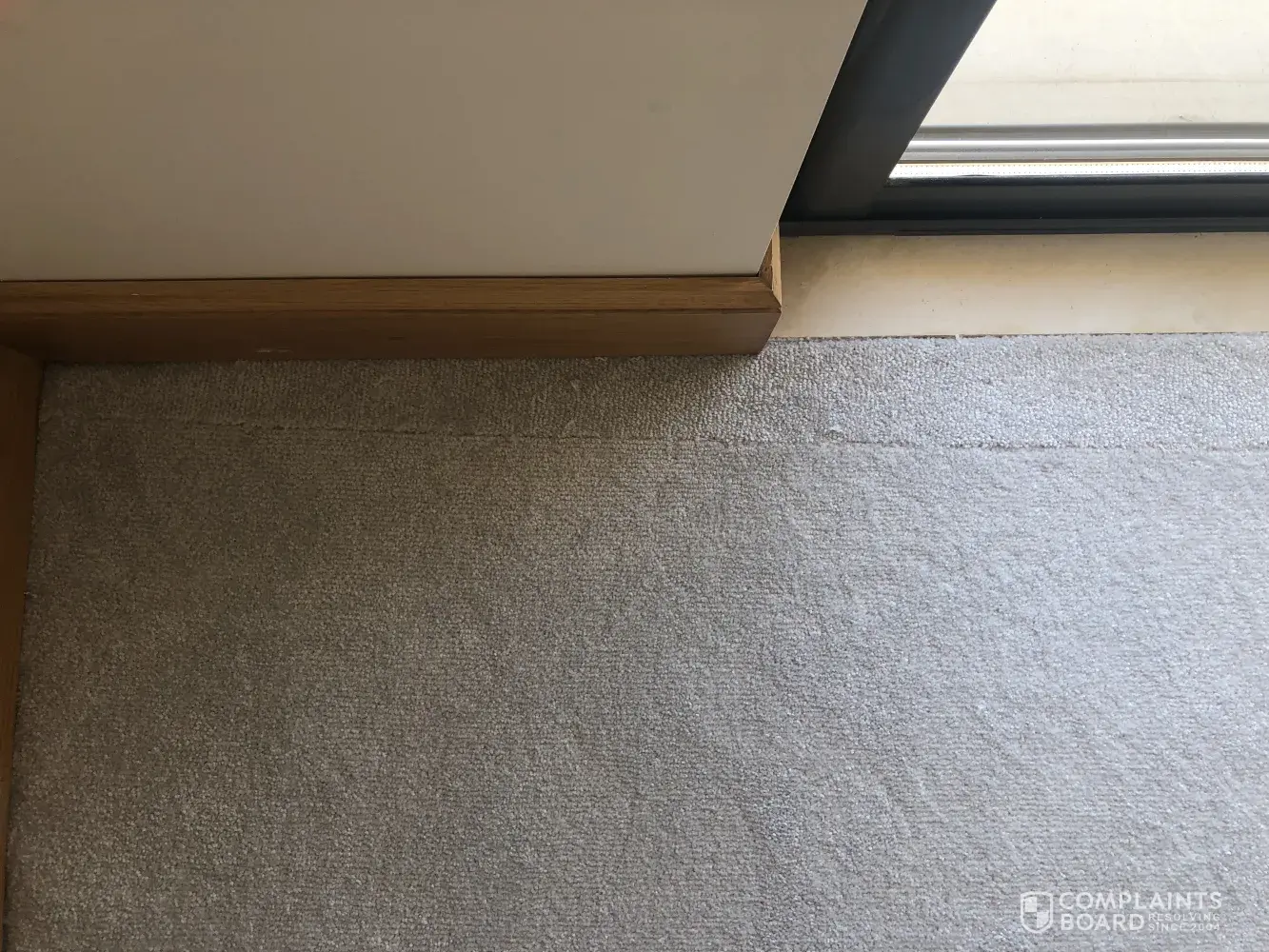 The installer has not done a good job with joins and the placement of the joins within the room. There is a section that has been pieced together with small bits of carpet like a patchwork.