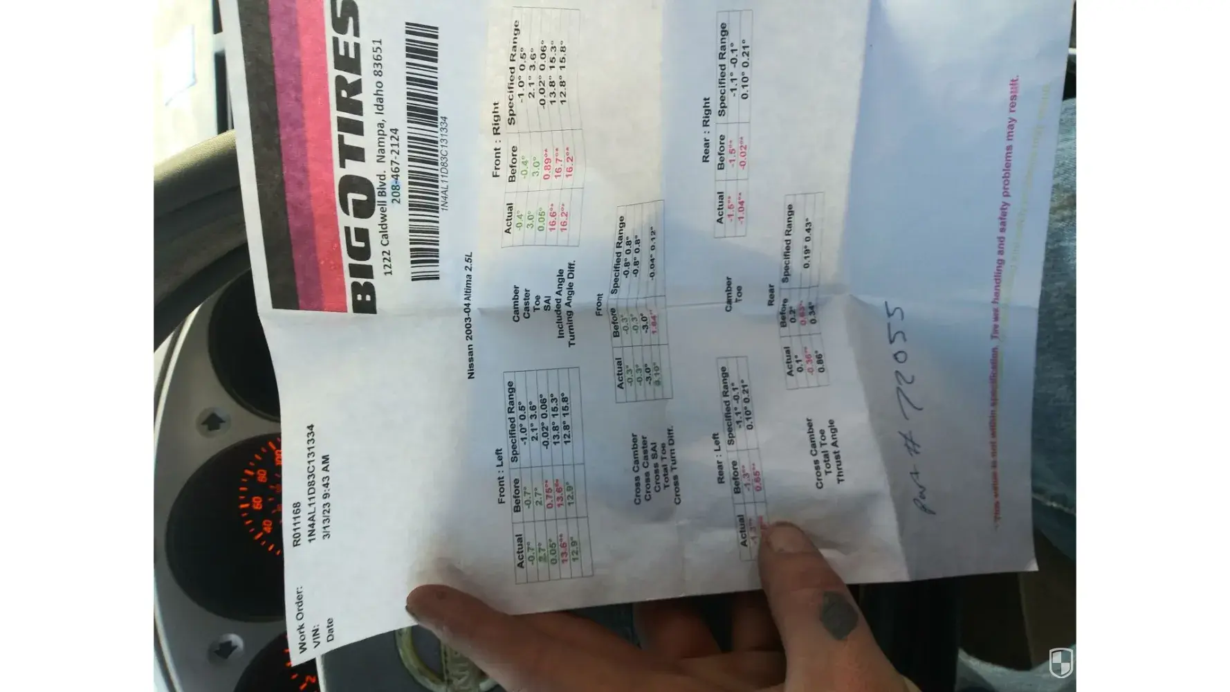 Not even a couple days before this I took it to Bigo and had the alignment checked on it which also your picture of it below there alignment machine didn't show my alignment as bad as What Les Schwab's did I think Les Schwab's machine is messed up