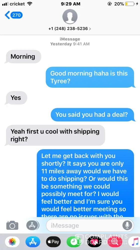 I made a report to y'all as well as to Dallas Police. I just need my money back and to return the piece of junk he sold as phone back to him. I don't want to report this site to others as terrible. I'm giving all a good chance to handle me well. I have been doing online, Craig and in-person transactions since late 90s, I've not felt this way before. Please can someone intervene. He refuses to answer my calls/texts. He would use your site again and again and leavin very unsatisfied customers/clients along his trail. HELP!