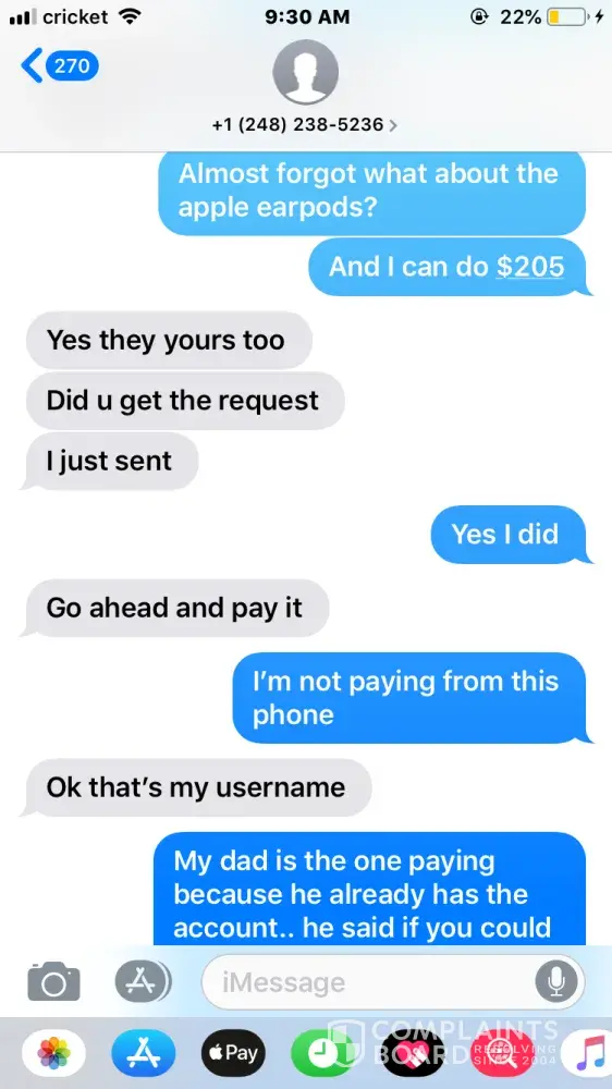 Hi my name is Arianá, in the night of November 21st, 2018 around 8:30 PM Western time, I Sent Ashley Parker money, unfortunately I was robbed. She informed me the product was $220 and after hours of conversating I made a purchase. Hours later she wrote me again demanding $75 more, I let her know I was unable to do so and she let me know I must. She replied I must send the $75 or have a good day. I do not appreciate this type of business. I would like my refund.