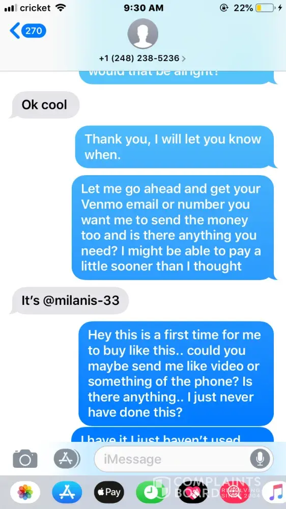 We chatted online and decided on $450.00. The phone was not charged at time of transaction and as soon as I realized his phone was not what he (Corey Davis ) promises to be, he stopped taking my phone calls/texts. The phone # he used to complete this transaction was [protected].