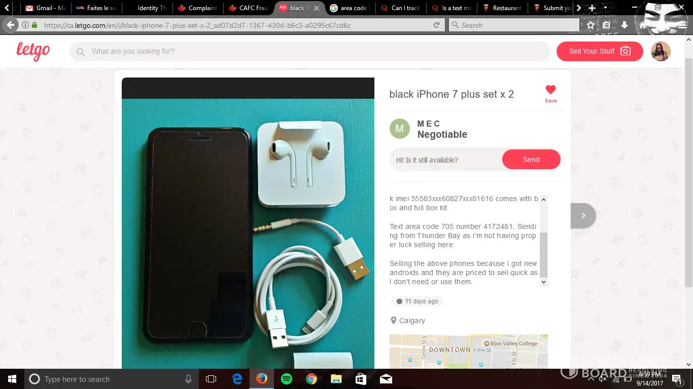 I sold a ps4 and he offered a check that looked real told me it was legit showed me proof of address and when i went to cash in the check the next day they told me that his account had been deactivated! I called him and he didnt answer and then after i called i get a notification on Letgo that he has blocked me and bad reviewed me! He doesnt answer and wont get back to me!