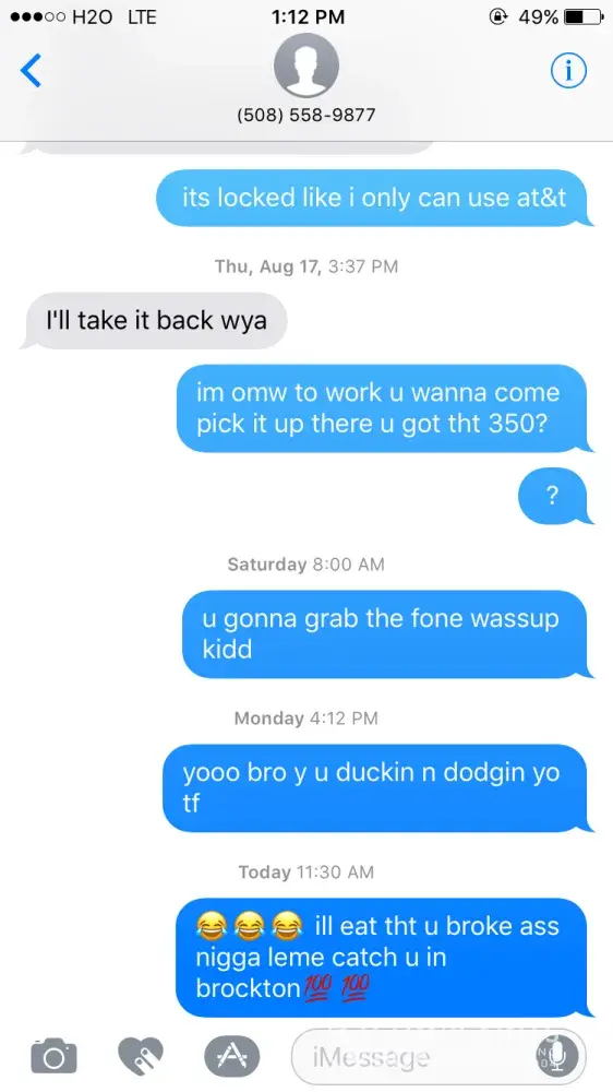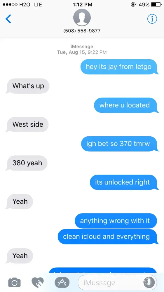Hi my name is jordan, I have been usin the app letgo for quit some time. It came a time when I wanted to upgrade my ophone 6 to a 7... Long story short I found this good deal by someone selling one close to where I live everything in the post was legit clean iphone emei and all long story short when I bought the phone he had claimed it lost or stolen already so when I went to activate it they had told me its stolen... Its not stolen when I payed $380.00 for it... Money doesnt grow on trees... So I had contacted the seller and he had blocked me so im [censor] out of 380.00 because their are scamers on here! Very disappointed