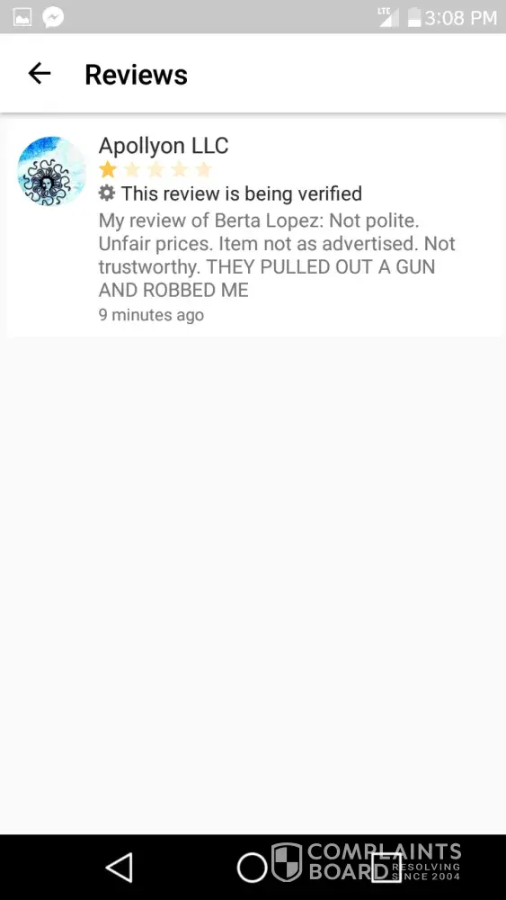 The user Apollyon LLC acted very immature after i denied there offer, told me what to do with my item i was selling saying to just junk it, stalked both sites i posted my car on and made up a lie saying i pulled out a gun and robbed them. I find that very unprofessional and i don't appreciate someone trying to make me look bad because they were unhappy.