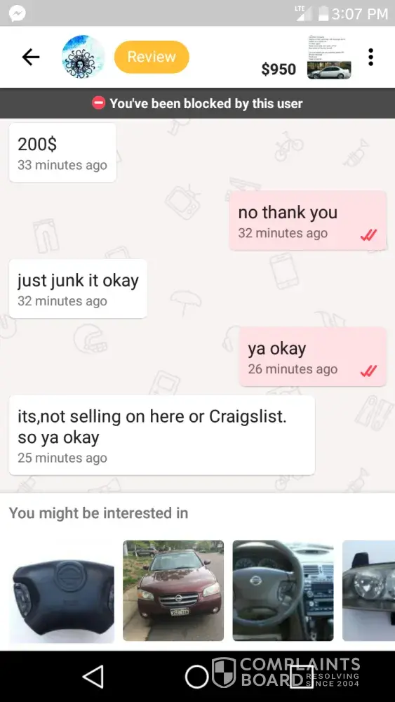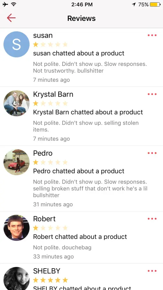I would like LetGo team to please remove these two reviews... it's hurting my account...