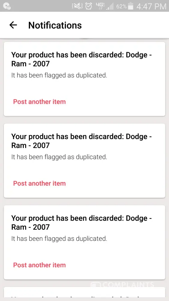Same here. Posted a bunch of stuff, someone immediately flagged it as duplicate, which it wasn't. Then, reposted and then the person (presumably same one?) "suggested a picture" would be more appropriate, which was the back side of the playing cards I was selling. so, obviously, they then *were* all duplicates, because the back side looks all the same. So took off the back side pictures and reposted... etc. It's really broken in that sense. Super new to this app, so I don't know if there's some kind of way to complain about it, or that eventually the flagging stops because there's some oversight. But it was disheartening and frustrating.