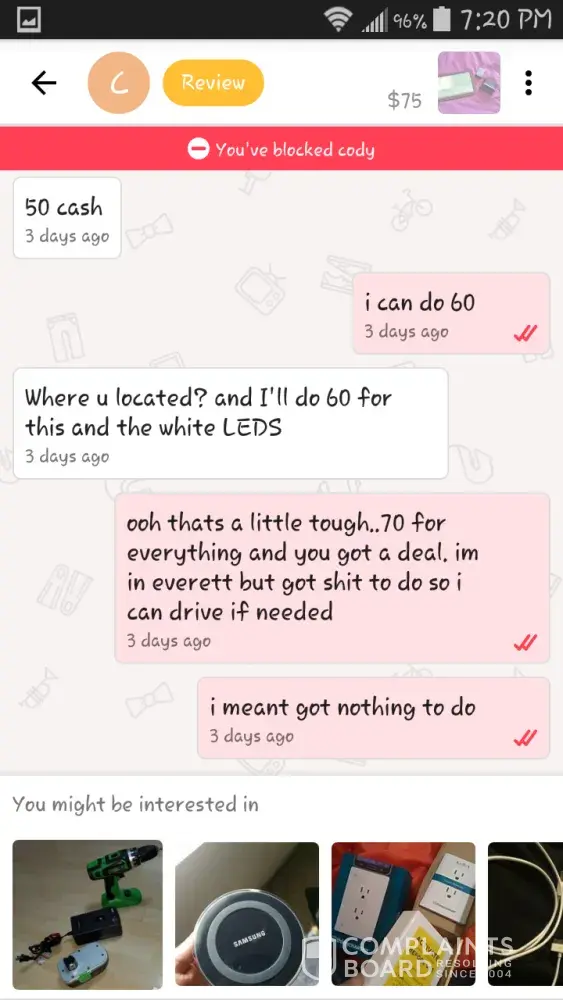 Case 2: another guy pings me on alll my items low. Selling them so bad. I tried to give him one deal but he didn't maintain the schedule.. then he again offered me on my another item, I told him to reach me only if he is ready to buy. He straight away gave me a bad review and 1 star Liebig about me in it..