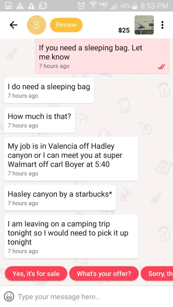 A guy offered to buy a tablet and some lights from me. Not once, but twice he said he would meet me and didn't follow through, nor did he get back to me. I was forced to send him a couple messages asking if he was going to show up or not. When he said no the second time, I called him out saying that it was wasting my time.