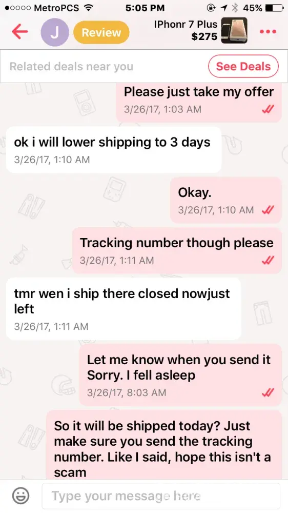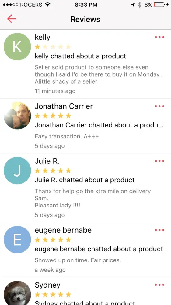 What really bugs me is people leave me untrue reviews but theres no where on the app for me to check my reviews our to report suspicious activity but yet people see and make untrue false reviews about me but I can't see there reviews its bull and needs to b fixed there no way to report anything now and no way to flag bad offers. Blocking is pointless there needs to b a better way to send and receive reviews I can't even see mine. I was left bad reviews I know that cause I'm having a hard time selling my popular items now which is wrong I used to have many sales when people treat u like dirt and call u names and stuff and I block them thats no reason to leave a nasty review about me which happens a lot I just want to sell my items I really do try to fair with prices to if I sell cheap they think somethings wrong with it theres not if I raise the price they get mad cause they gotta pay more if its worth more it should b given a chance to offered for more it just seems no one wants to payout anymore but if I buy a item they want top dollar its not fair