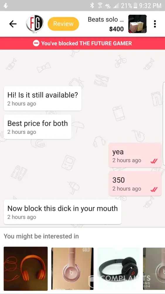 Letgo user left me a bad review and blocked me