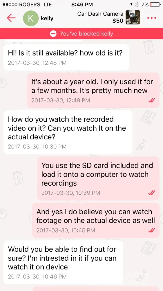 She said she would be interested in my item IF footage could be viewed on the camera and not just on the computer and asked me to check and said on Thursday that she would be in Kelowna on monday. Even though she said she would be interested IF footage could be viewed on the camera, in which I told her it could...being "interested" in an item does not mean you're committed to buy it. And she said she was going to be in Kelowna BEFORE she was interested "Im interested in it if you can watch it on device ... I'll be in known Monday" And then writes in the review "Seller sold product to someone else even though I said I'd be there to buy it on Monday."...no...you actually didn't say you would buy it and you didn't say you would guarantee buy it on Monday... She just said she was interested and was going to be in Kelowna on Monday. What does that mean exactly? That doesn't sound like a commitment to buy to me. When someone commits to buy - we agree on a time & a place and a price if they negotiated. She did none of those things. Huge lack of clarification, miscommunication & overreaction by this person. Plus they leave me a horrible review then block me so I can't even tell them my side of the story or leave them a review...unreasonable, judgmental and unfair.