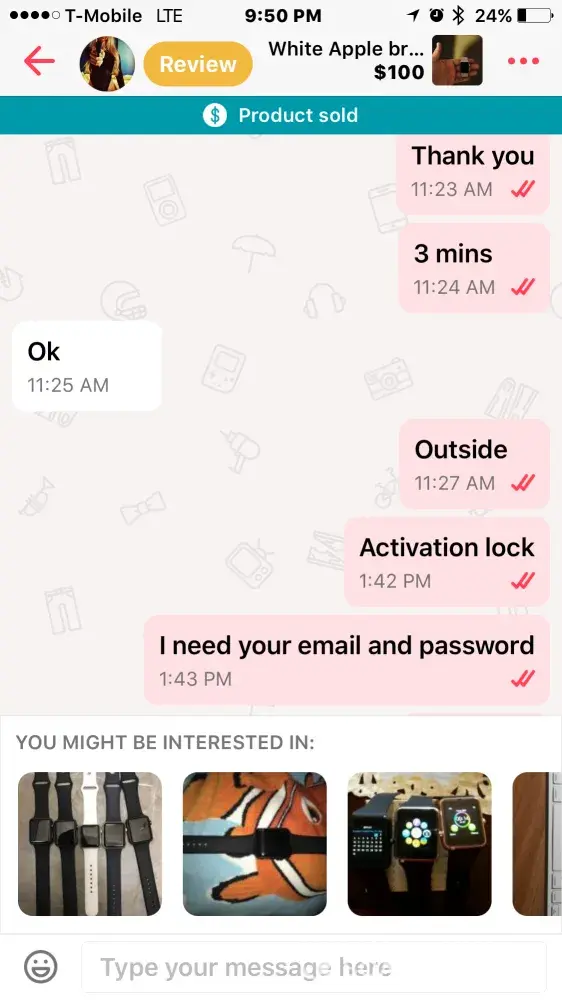 Today I drove all the way from Queens to the Bronx to buy an Apple Watch from Joey G. When I arrived at Joey's location I asked him is he sure that the Watch is unlocked multiple times and am I going to have any problems with the Watch. He reassured me that everything was fine with the Watch and that if I had any problems that I can contact him. When he gave me the device it was dead. When I got home and charged the device there was an Activation Lock on it. I contacted Joey asking him to send me his email and password to take off the lock but he looked at my message and didn't respond. I have come to the conclusion that his device has been stolen .