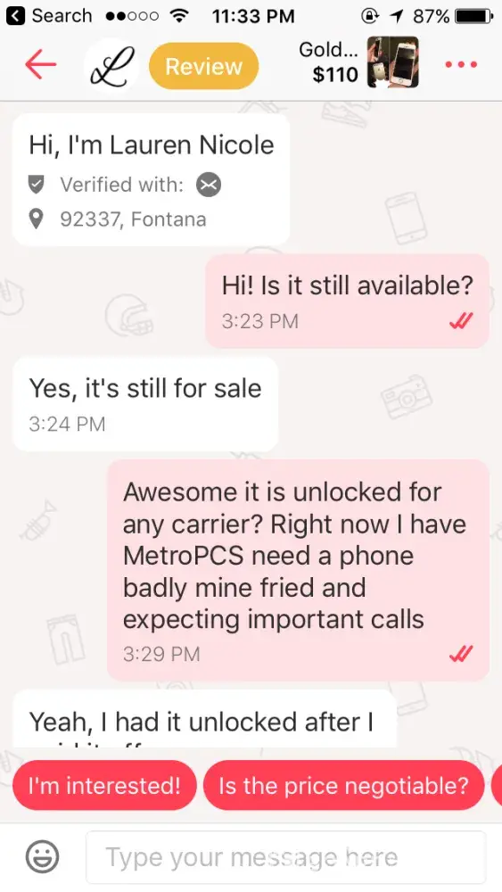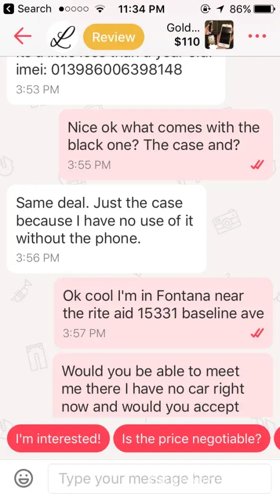 On February 14, 2017 at approximately 430 in the afternoon I met this person called Lauren Nicole to buy her iPhone 5s for $100. I met her at the local Rite Aid in Fontana California and she seemed very nice and present to her self well during the time I met her. Her boyfriend and African-American male accompanying her, turned out to be a nice guy as well.