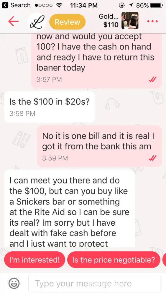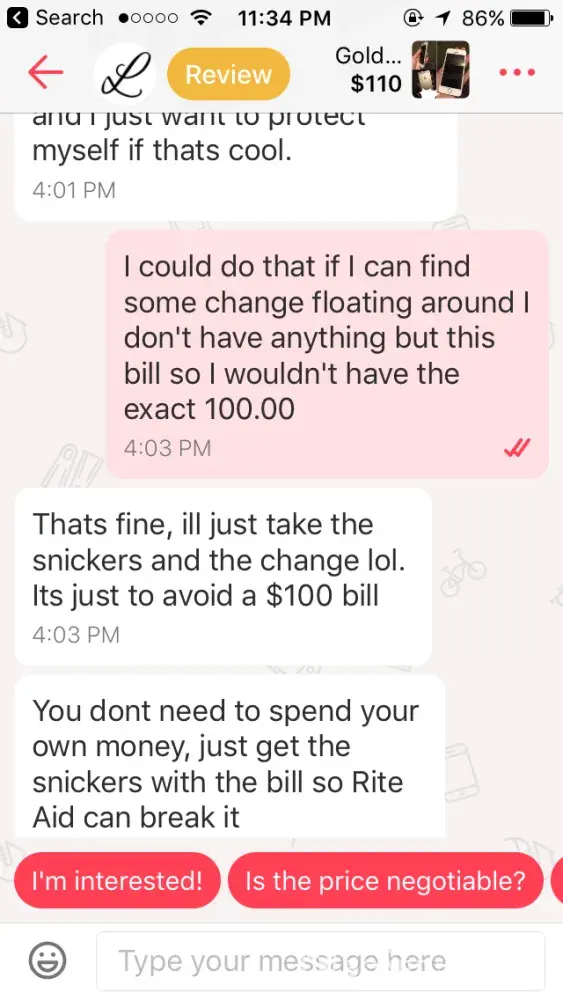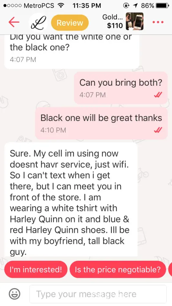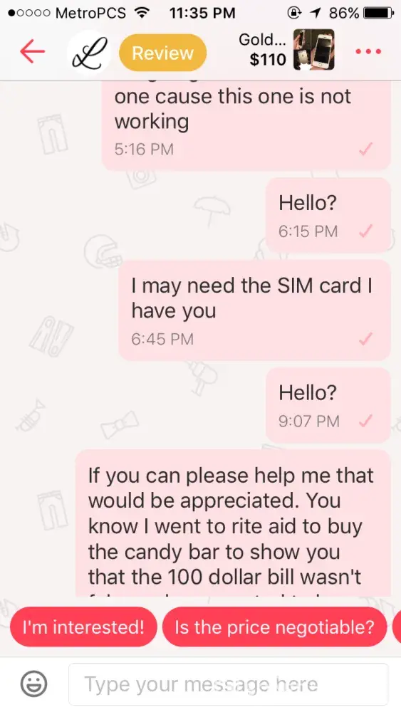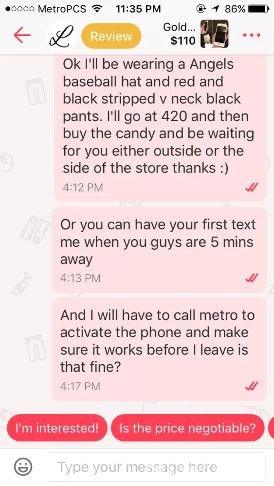Letgo bad review from a buyer who didn't show