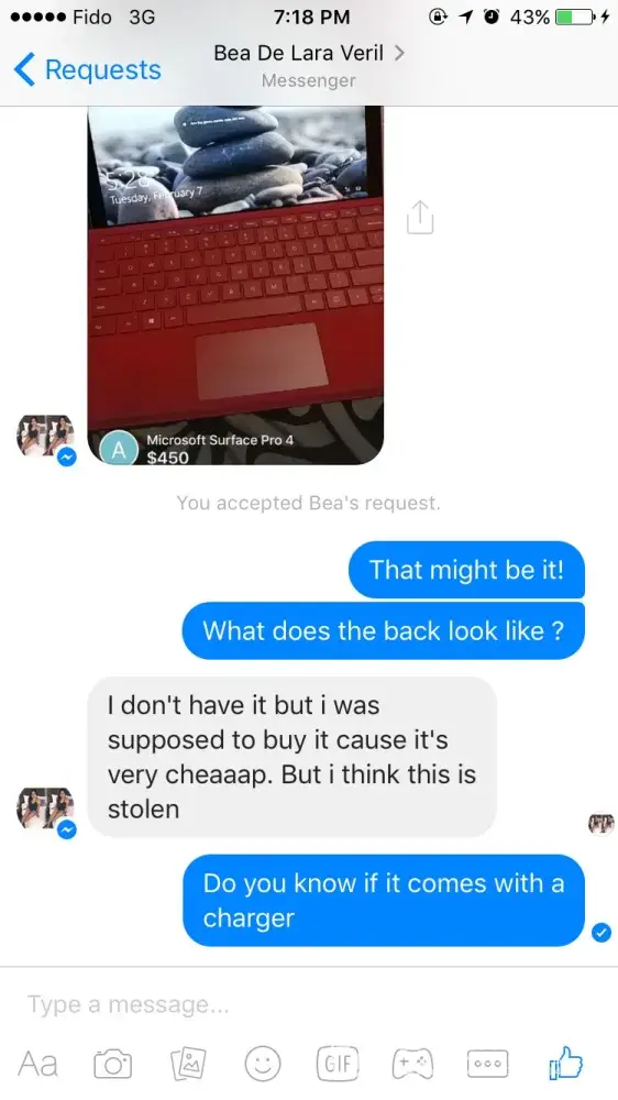 I had my Microsoft surface pro 4 stolen from my vehicle about 2 weeks ago.