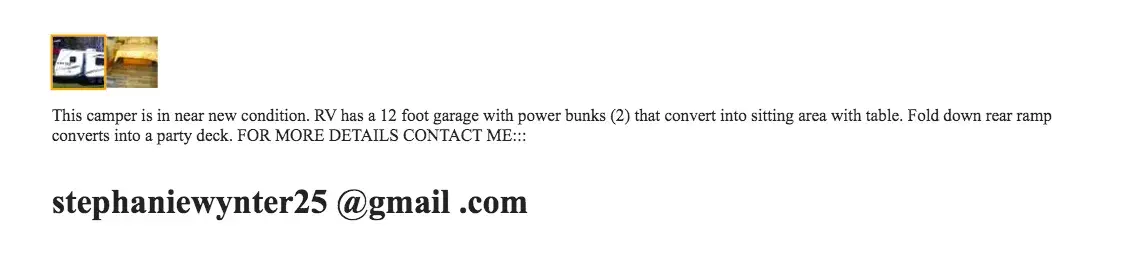 Almost did the same thing with the same person in a very suspicious transaction. A trailer for $800 was listed in NY and she said it would be shipped from Butte, MO for a total of $800 including shipping. Suspicious.