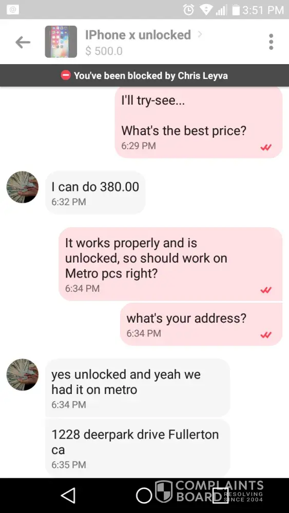 Can't get more info like address since I was blocked