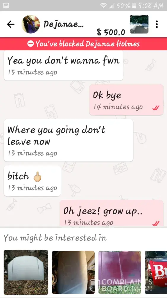 A gentleman was inquiring on an item I am selling and because I wouldn't give it to him for the price he wanted...he sent a negative sexual comment back. I am a female and will not accept this at all. Please do something about this negative person.