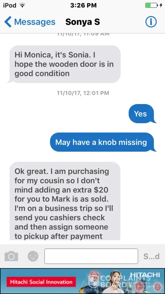 I Got a response to a picture I posted for an item for sale and neither the person nor the picture of my posting is in my selling list or chat list.