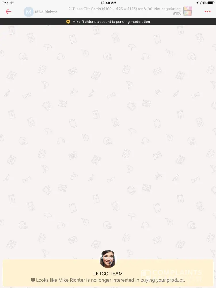 I messaged him, he never answered back, I reported it to letgo and haven't heard from anyone yet.