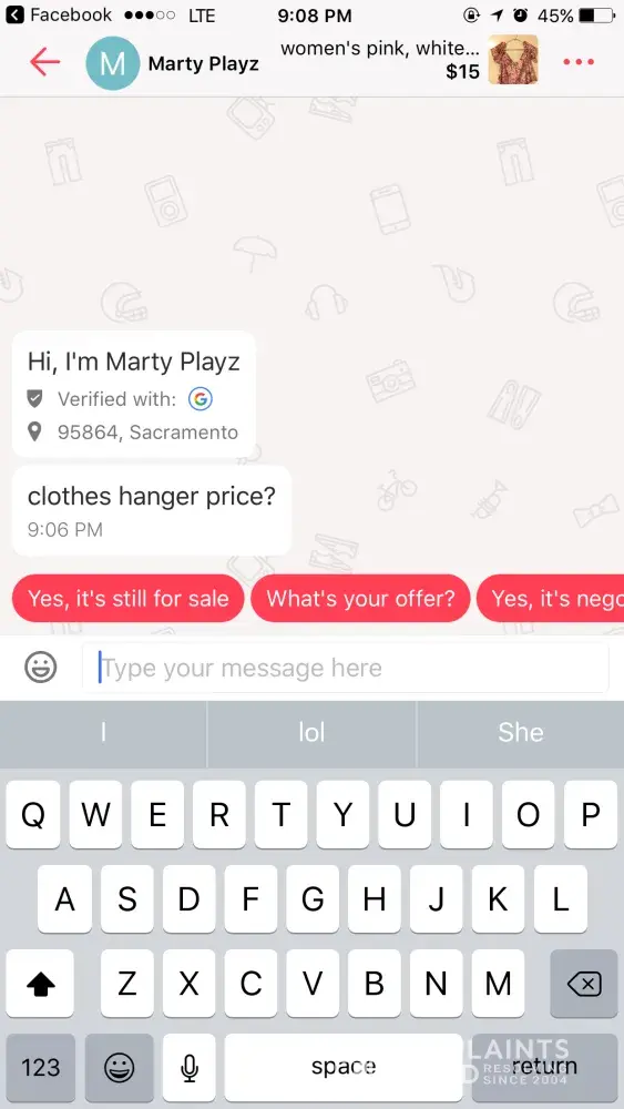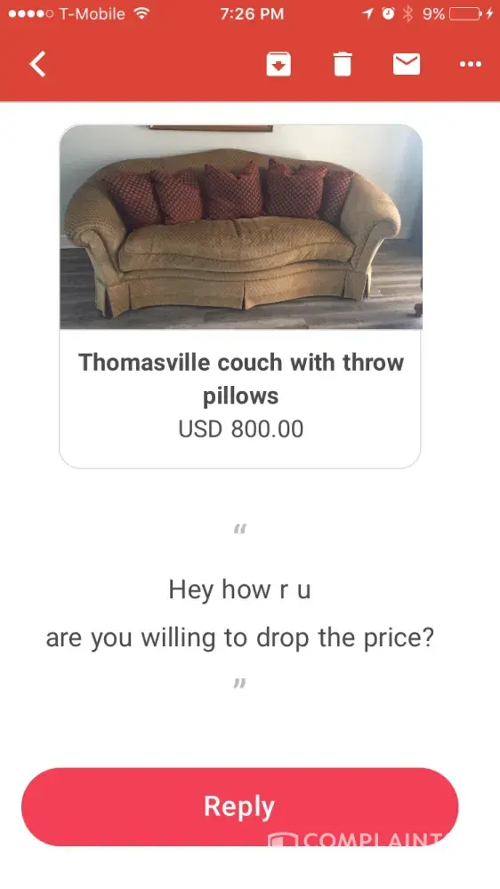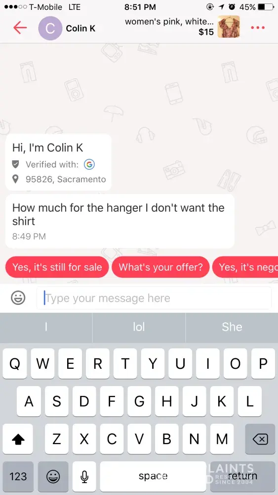 I got two messages asking me how much I'm selling the hanger when it's obviously I'm selling my clothes. Wasting my time and it's probably the same person. Please delete these people's accounts.