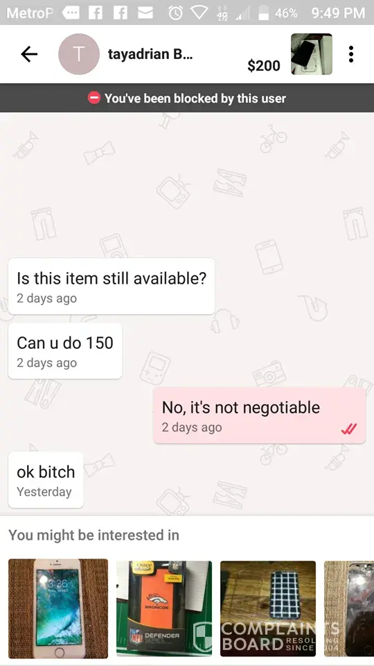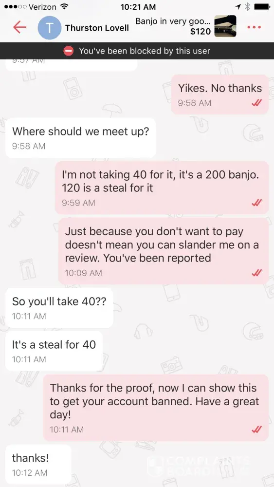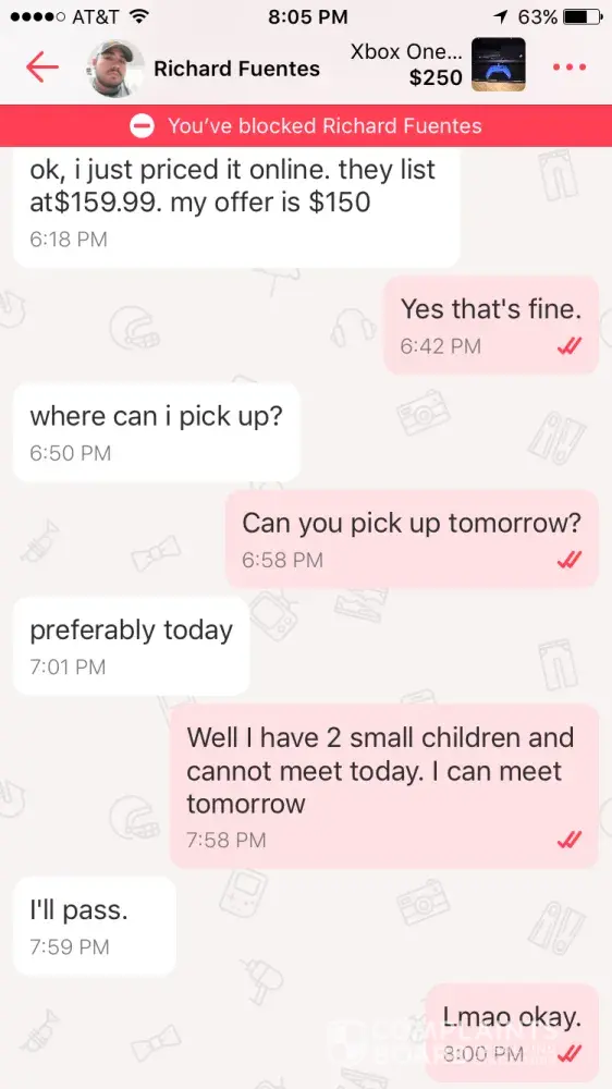 This guy sold me a stolen phone! When I tried to get my money back, he blocked me.