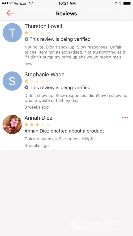 I have users leave me false review. Her name is Meagon Nicole.