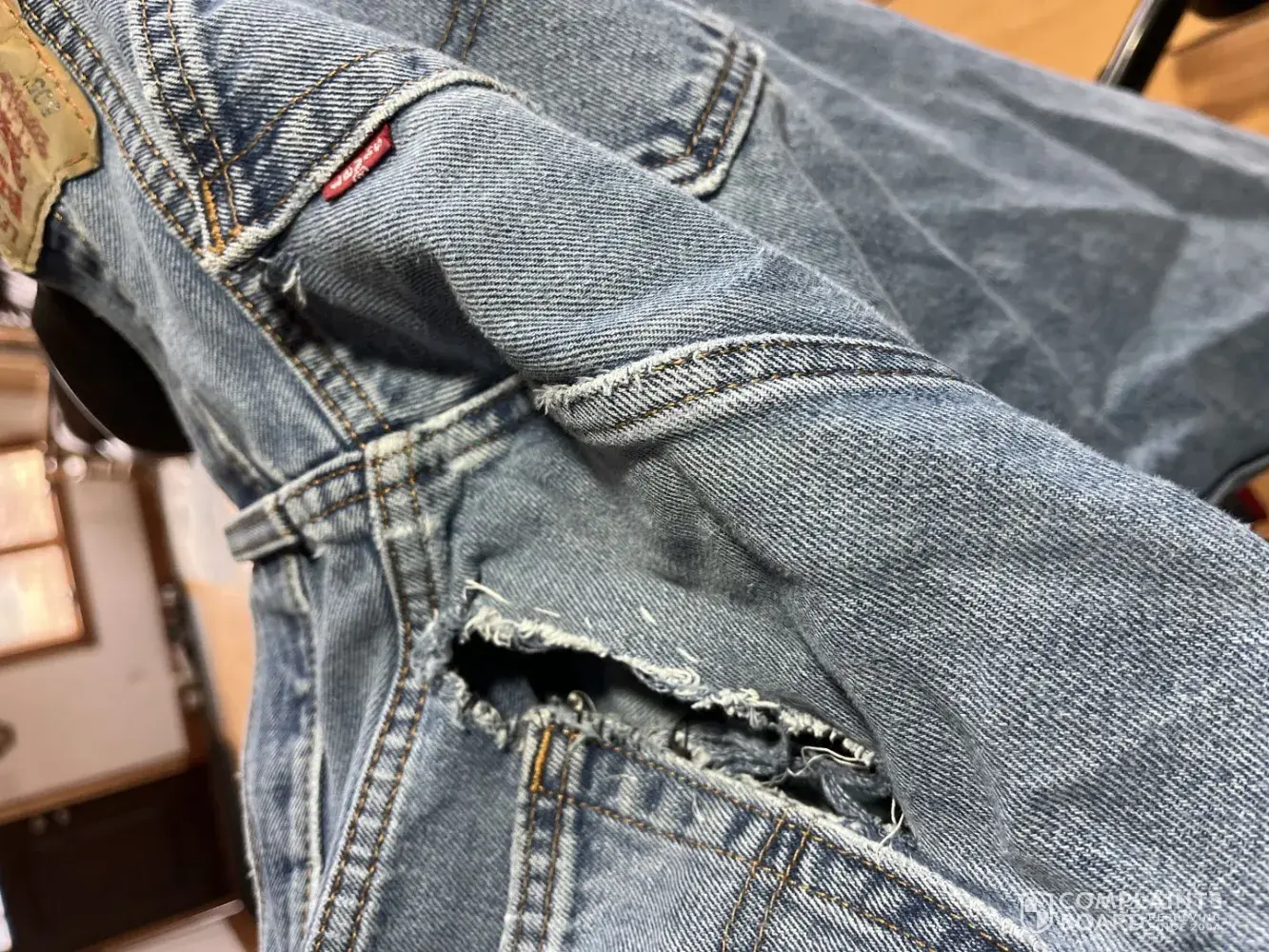 I bought my jeans in January 2023 I have only worn them 4 times today they are torn. This is my third Levies jean that does this on the same place. I thought the first two were just wear and tear however my current jeans are still new. Am so disappointed as am currently in the office working and my jeans are torn. I don't even know what to do as I cant even go to the mall to buy new ones. my underwear is showing. I bought the jeans on sale for R899 and they didn't even last a year.