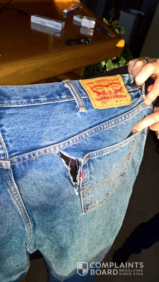 Wow, I am completely disappointed with the lack of quality and poor denim materials of my levis jeans. As with many other consumers who have posted, I have worn levis for over 50 years and have been satisfied. I just had two pairs of jeans rip by the back pocket as in other photos that have been posted. I also have two pairs of jeans that each have two belt loops that have torn off of the fabric. I used to be able to wear my levis for years without any sign of failure. The current denim fabric is much too thin!
