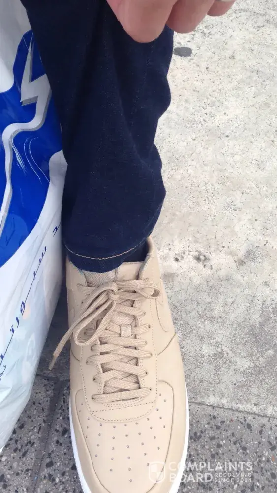 I am complaining about the new levi's jeans that we bought to my husband. He wore them with his brand nike beige colour nike airforce shoes and the jeans completely coloured - stained the new shoes!