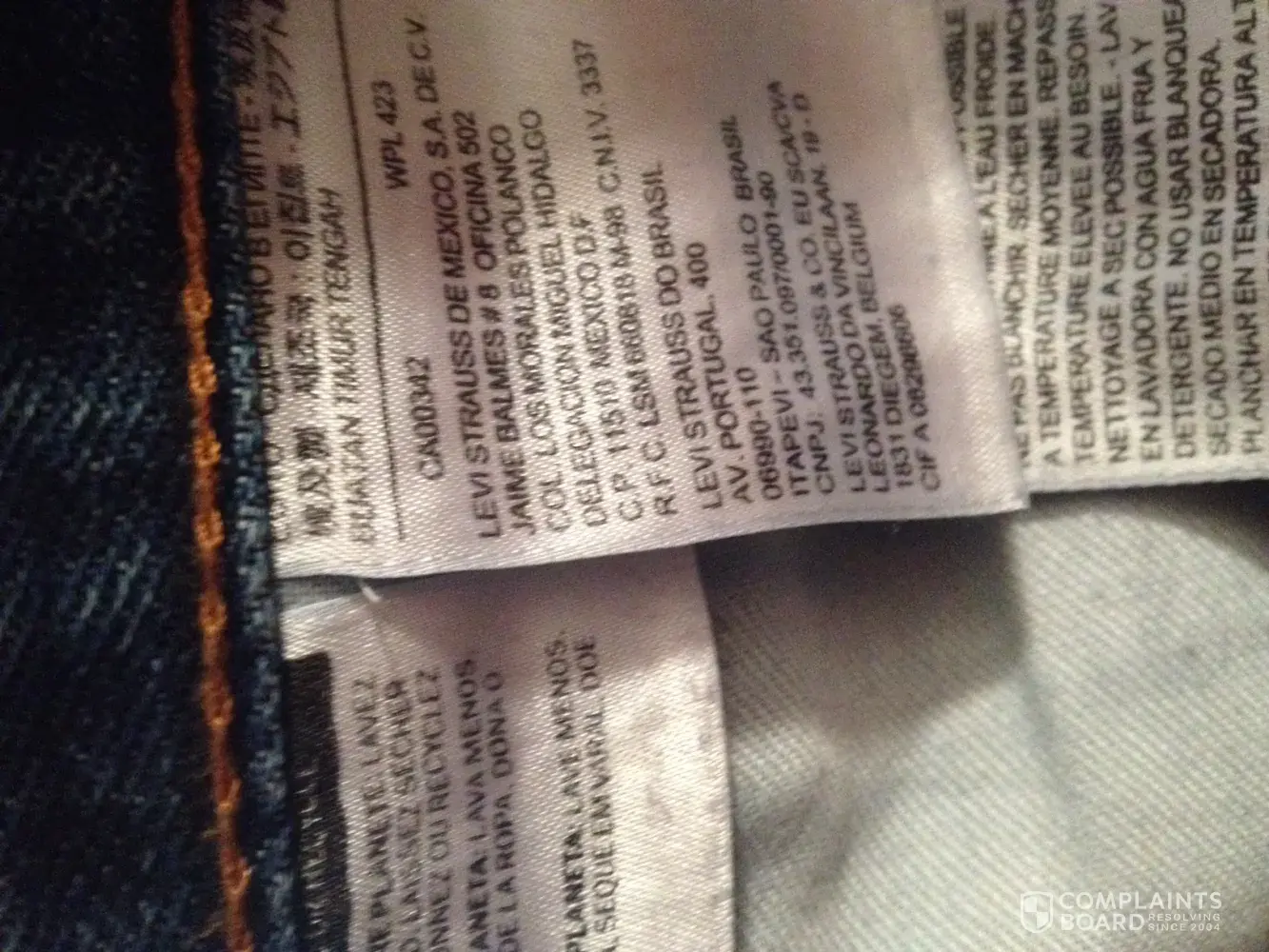 Unbelievable level of poor quality. Even better is when I went to the levi website to try and complain, the email that was sent bounced back to me as undeliverable. Sigh.