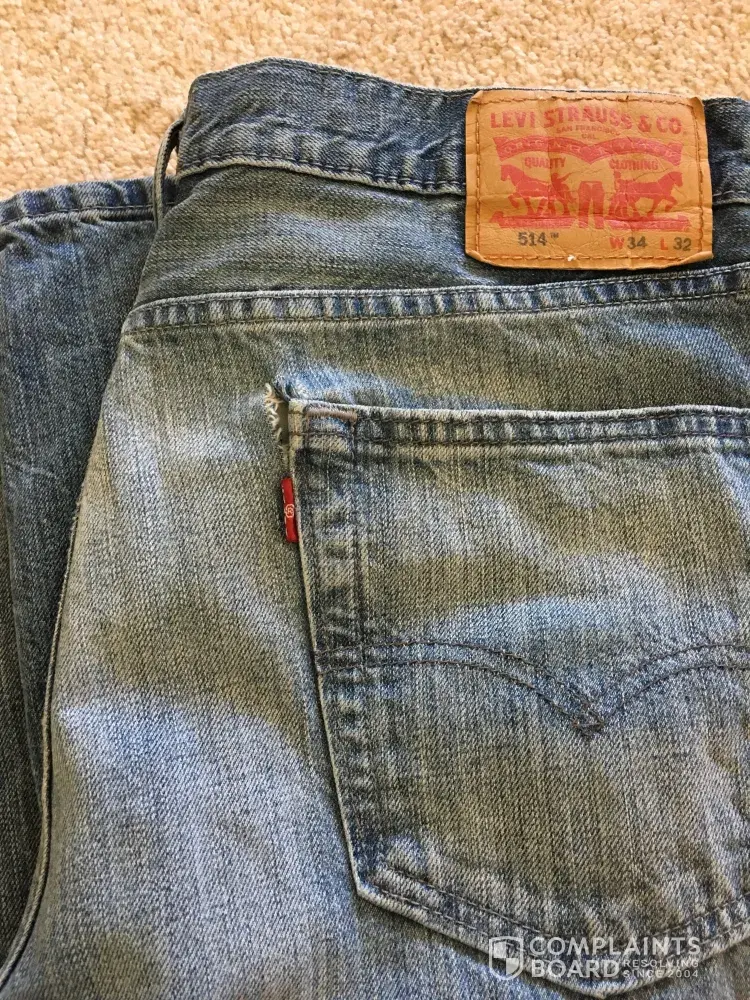 Levi Strauss & Co. levi 505 jeans ripped pocket, complaint email and not resolved