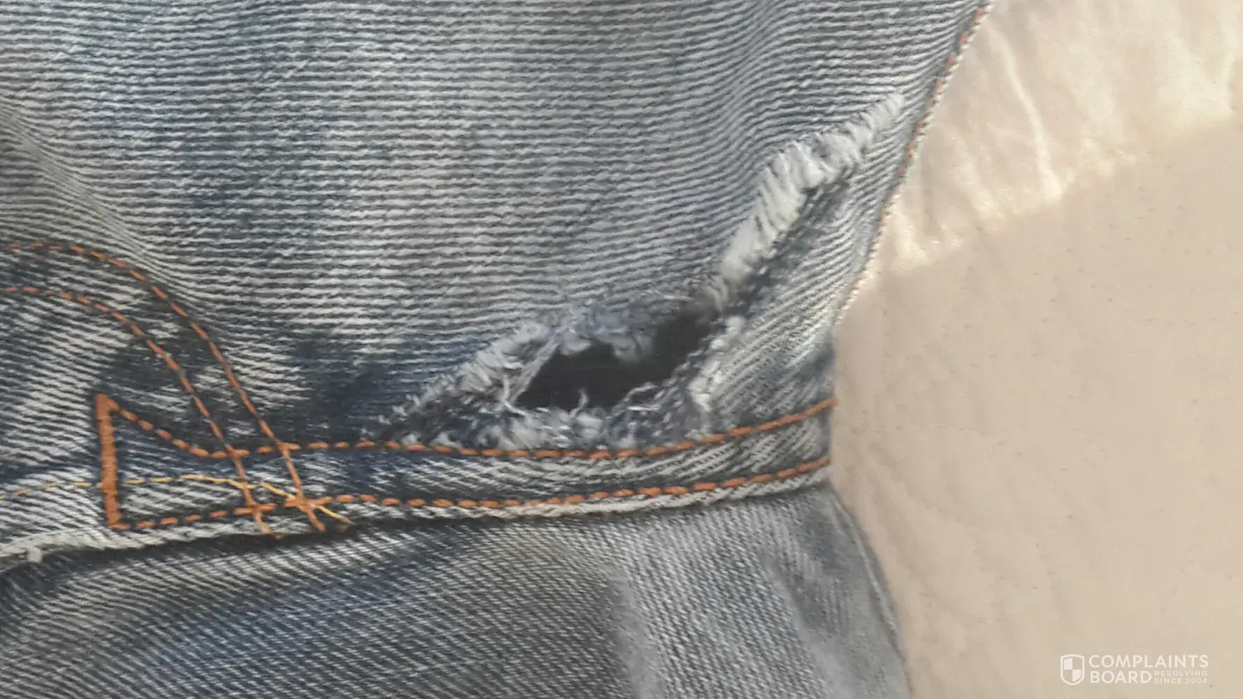 I purchased a pair of levis 751 stretch jeans for a christmas present for my husband. My husband was really pleased with them and they fitted perfectly.in total he has only worn these jeans around 8/9 times and we noticed recently that the material at the side of the back pocket had all ripped/freyed making these jeans now unwearable! Levis jeans are usually known for them being very heard wearing, so what has happened?