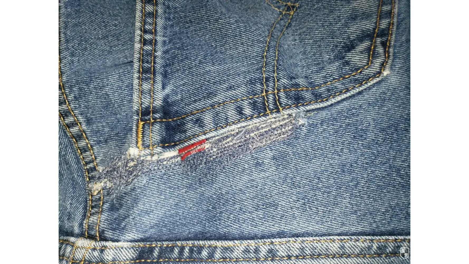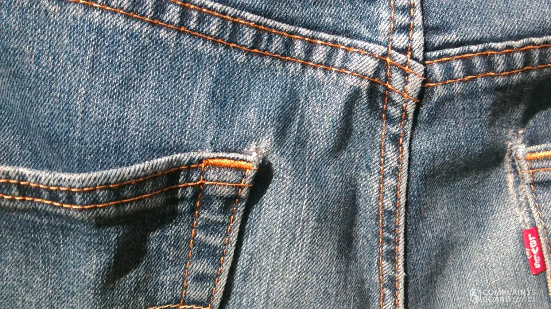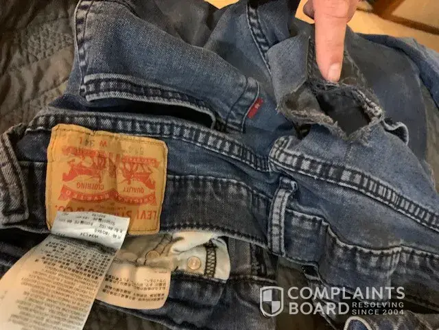 levi pants tearing in the same spot on 5 pairs. left rear pocket top side.