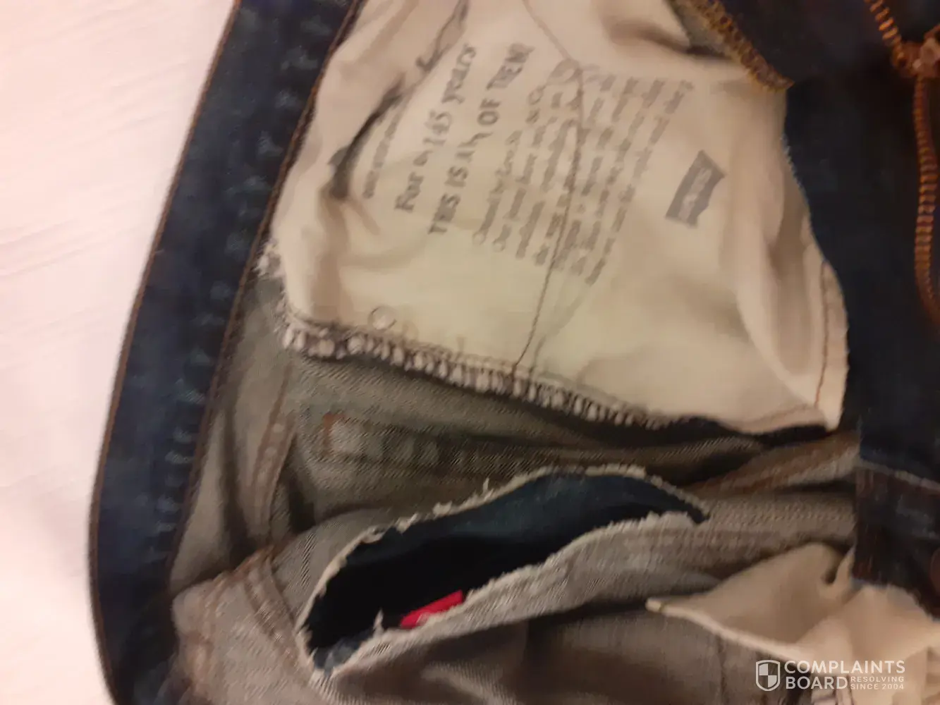 I also had a tear at the back pocket after a couple of weeks which I couldn't understand.Now they are developing a hole at the backside.They were bought from Costco so will be genuine.I have had 501's before and indeed bought a grey pair a few months previously which are still in good shape so I don't know why my mid blue pair failed so quickly.Is it a different grade of denim?