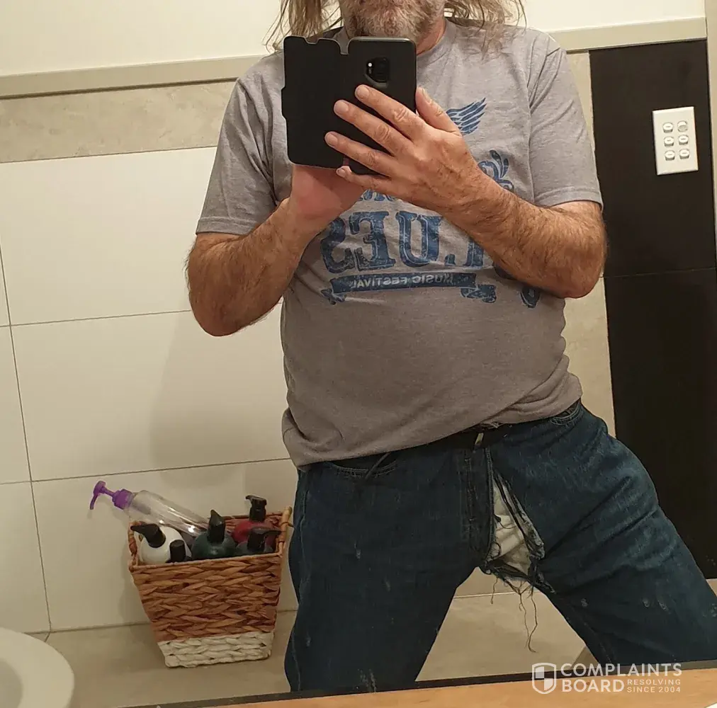 Hi, my mrs was in Vegas around this time last year and purchased myself two pairs of levi Jean's (red label)which I love.On a sat night out in town as i got up off my seat I realised by the sound, that my Jean's had ripped somewhere at the bum.Obviously I had too make my way home with my mrs, .I have been wearing Levi's for as long as I can remember and I can assure you iv never had any problems with your product, I'm just wondering was there a weakness in the area were they ripped.As you can see by the photos this wasnt a fall in that it was my fault.I hope to hear from you soon.yours faithfully Mr sean Malcolm