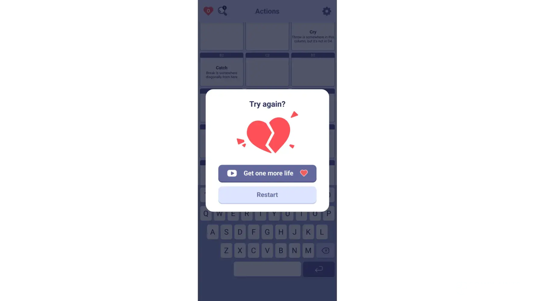 And finally, if I go through the effort of getting a hint (watching another ad), it would be nice if it had a hint with it so I could keep going.