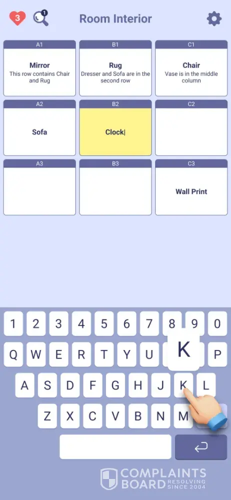 The game itself is interesting and makes you think. Some of the clues are too vague at times. This games major downfall is the amount of ads it has. There’s no way to pay to remove the ads, the ads are long, they show up in the middle of the game ( several times depending on the size of the board) they show up after each level. You only get 3 free hints in the entire game and after using them you have to watch ads to get each and every one. If you use all of your ‘lives’, for lack of a better term, you have to watch an ad to keep going or restart the entire level.