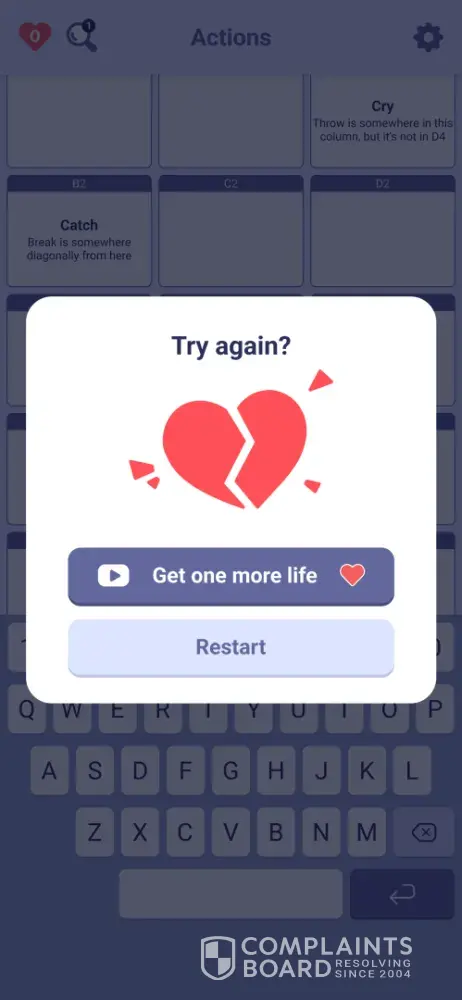 Three to four ads inside a play level! Yikes! I’d be more willing to watch two between levels than have my play interrupted. After the ad you often have to reread all the clues because you’ve lost your train of thought.