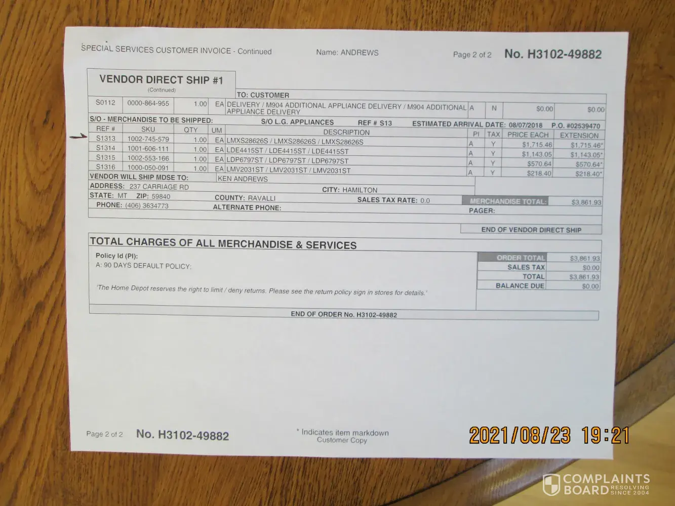 On July 5, 2018 from Home Depot in Missoula, Mt. and on June 30, 2021 my refrigerator quit working. I called LG on 7/1, 7/5 and 7/8 2021. Finally a repair technician from A & E came on July 21, 2021 and said it was a bad compressor. On August 9, 2021 the compressor was replaced and the technician left without checking to see if refrigerator was cooling, it WAS NOT, and another appointment was scheduled for 8/12, 2021 and the technician did not show. Another technician came on 8/18/2021 and said the Evaporator was bad. Another technician came on 8/23/2021 (RNN210820082827) and said refrigerator could not be repaired. I paid $1715.46 for the refrigerator and will attach payment info. I think I am entitled to $500 for loss food and no refrigerator for 58 days. Phone contact is [protected].