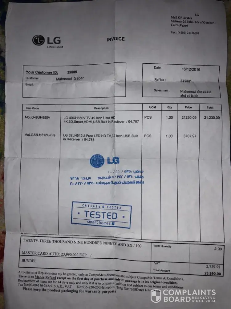 LG Electronics not respecting local law regulations - vat